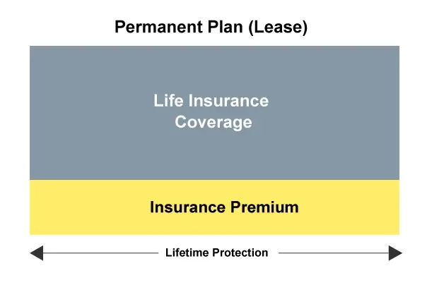 The next option is to look at permanent insurance. This plan is guaranteed to pay out at some point in the future. Think of this as a lifelong lease. When leasing a property, you might lock in a 5-year lease. Here you are locking in a rate today (more expensive than the rental option) for the rest of your life.
